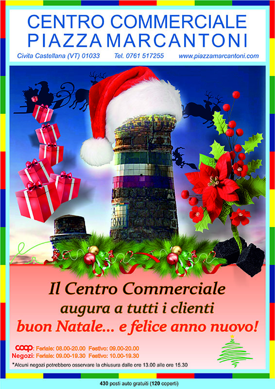 In occasione delle festività prossime venture il CENTRO COMMERCIALE PIAZZA MARCANTONI augura a tutti i suoi affezionatissimi clienti un sereno Natale e un felicissimo nuovo anno da trascorrere “insieme”!!!!